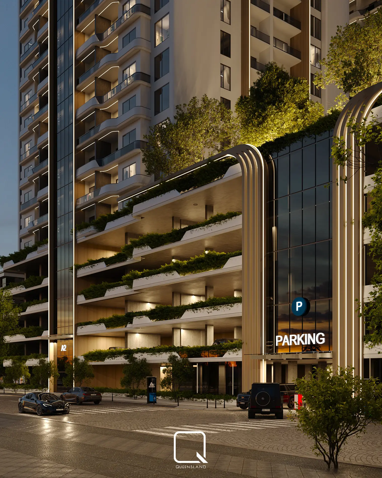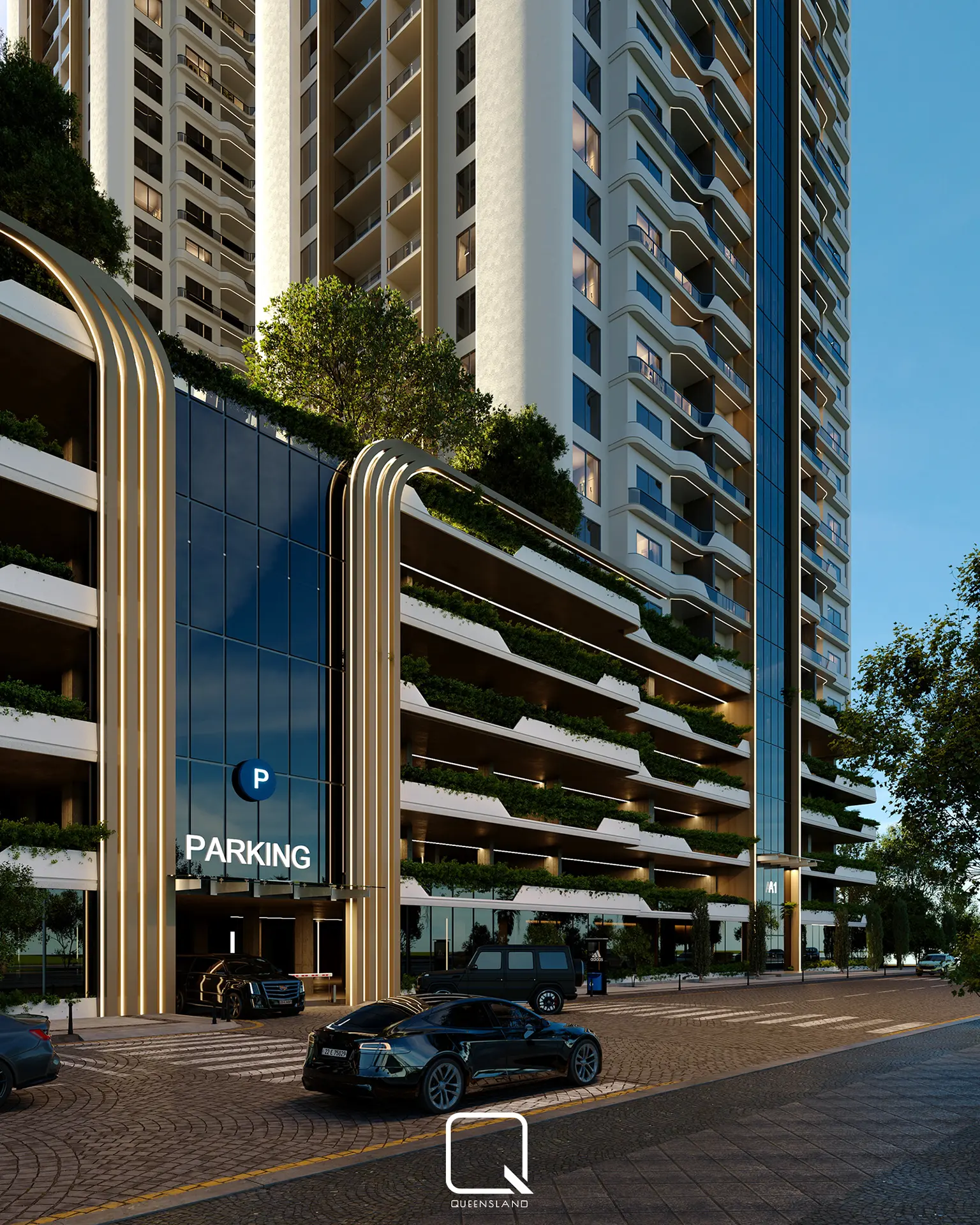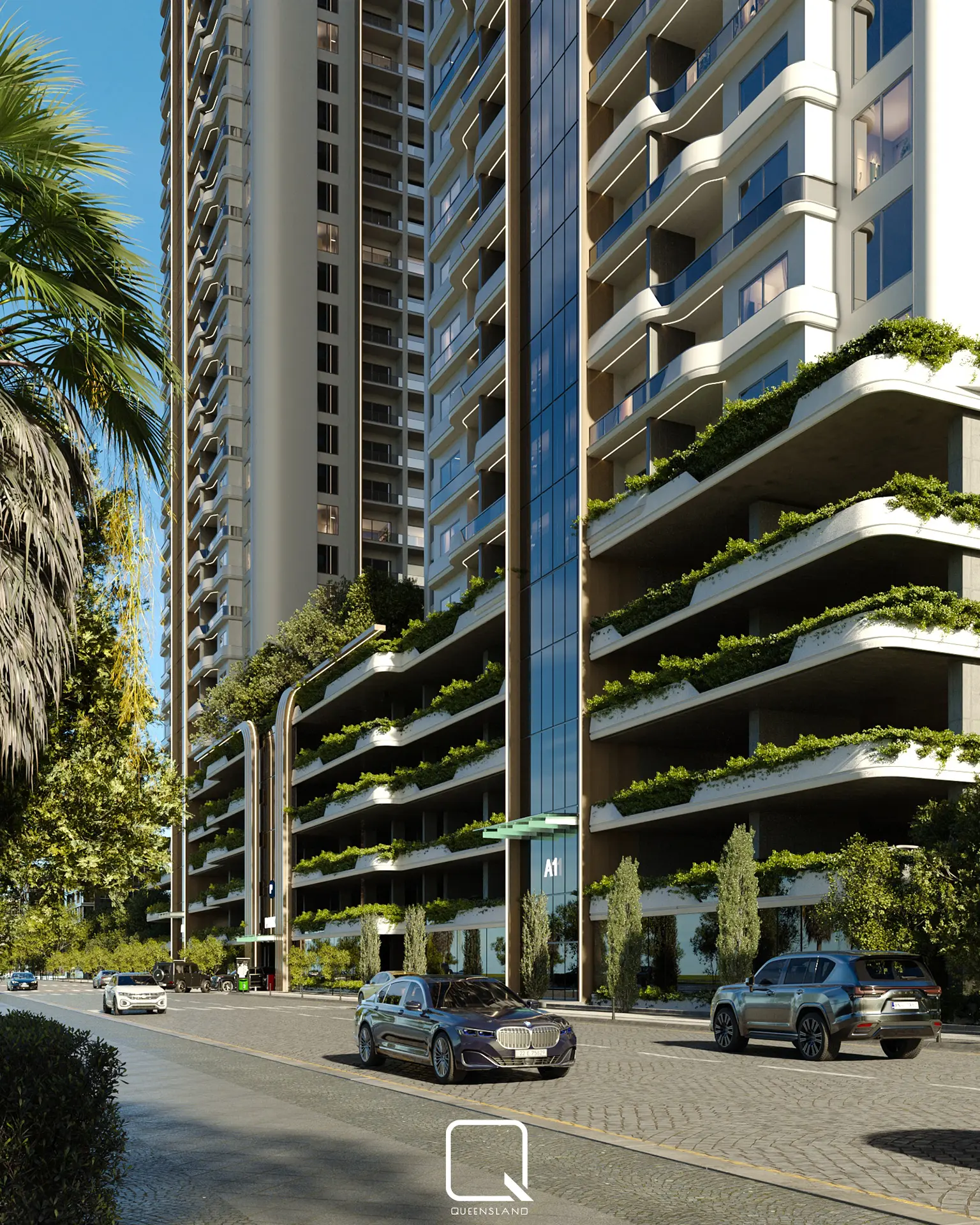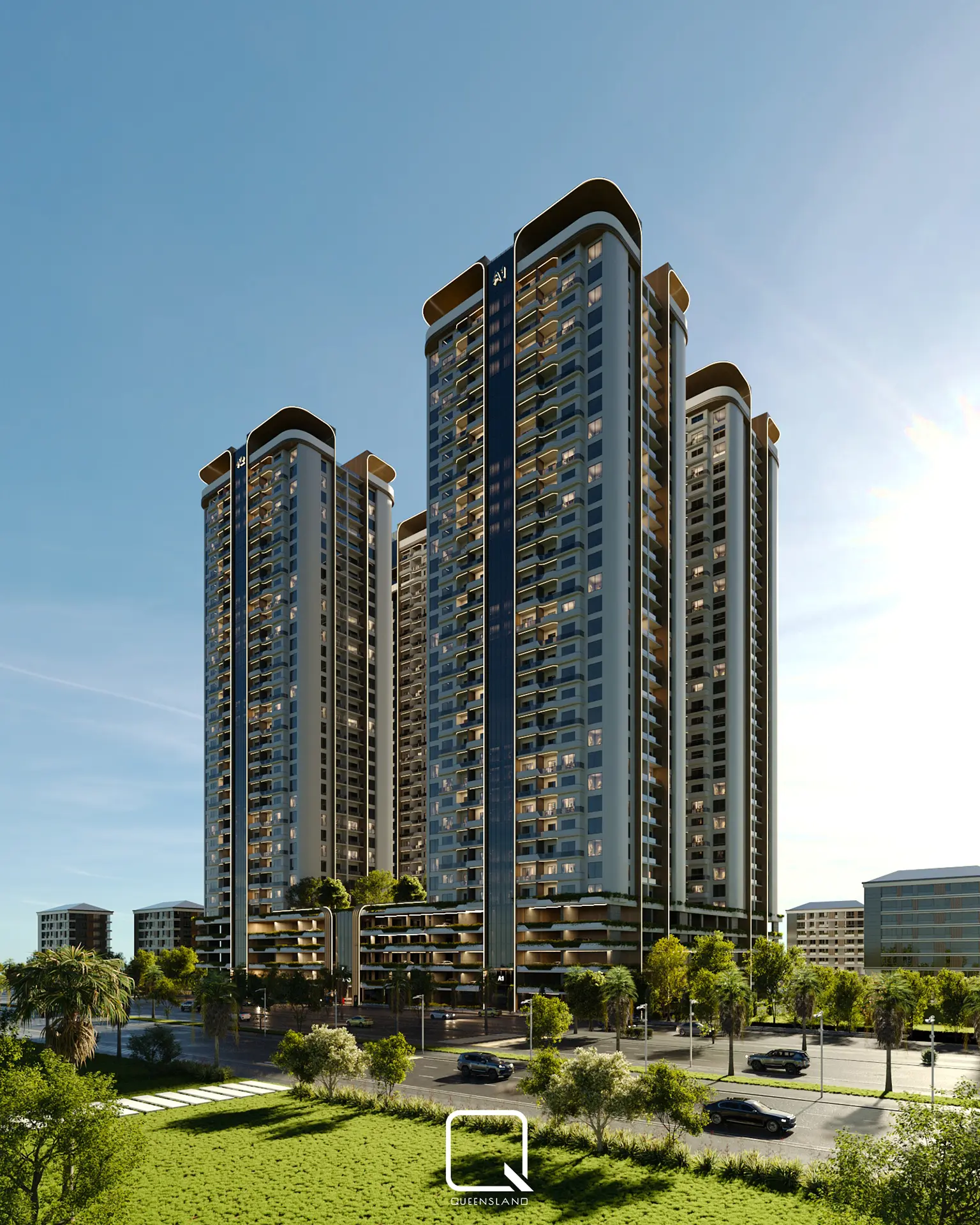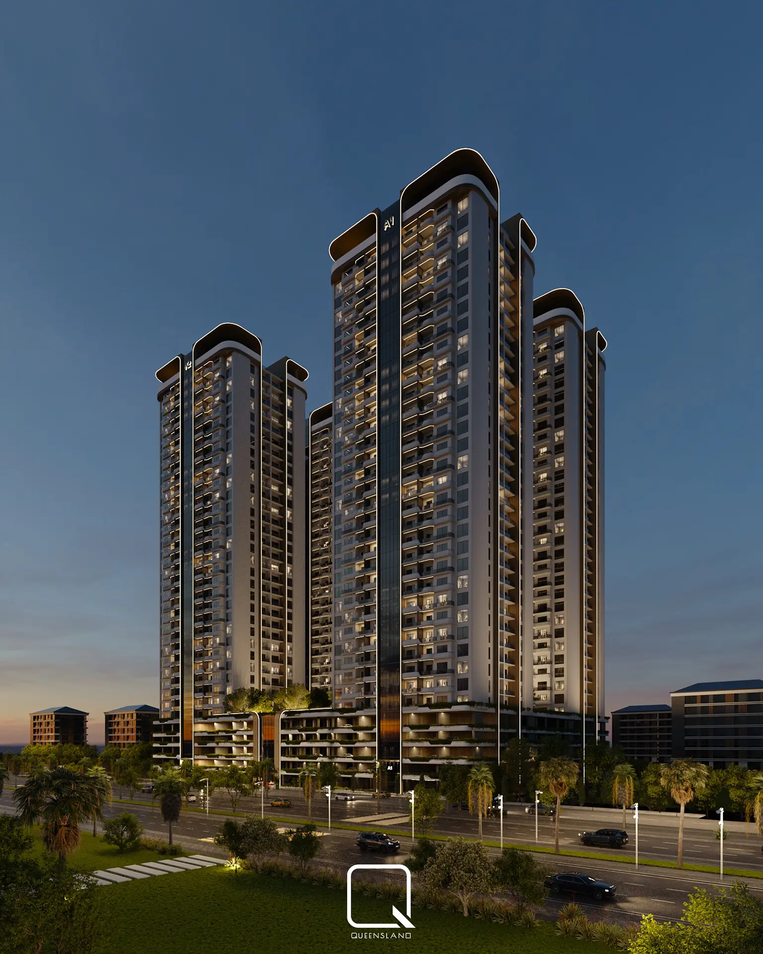 The exterior design of a Towers in Baghdad, showcases a blend of classic architectural style and traditional elements. The design emphasizes elegance and simplicity, with clean lines and thoughtful landscaping that enhance the towers’ overall aesthetic.