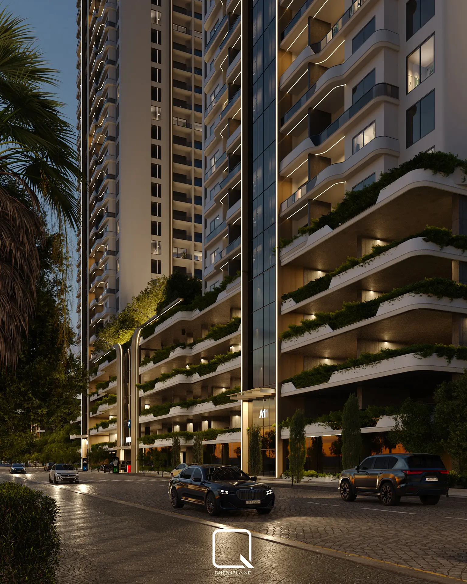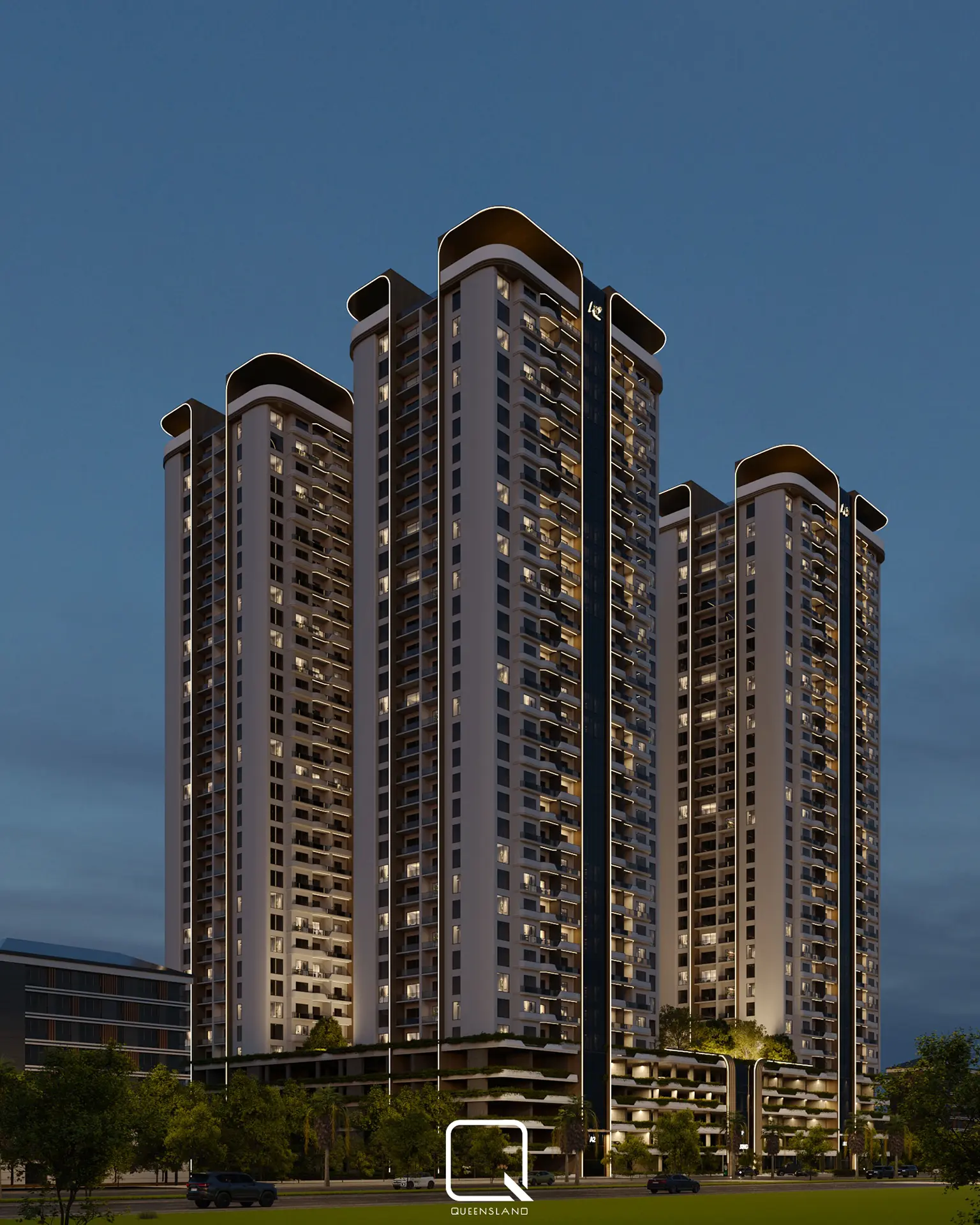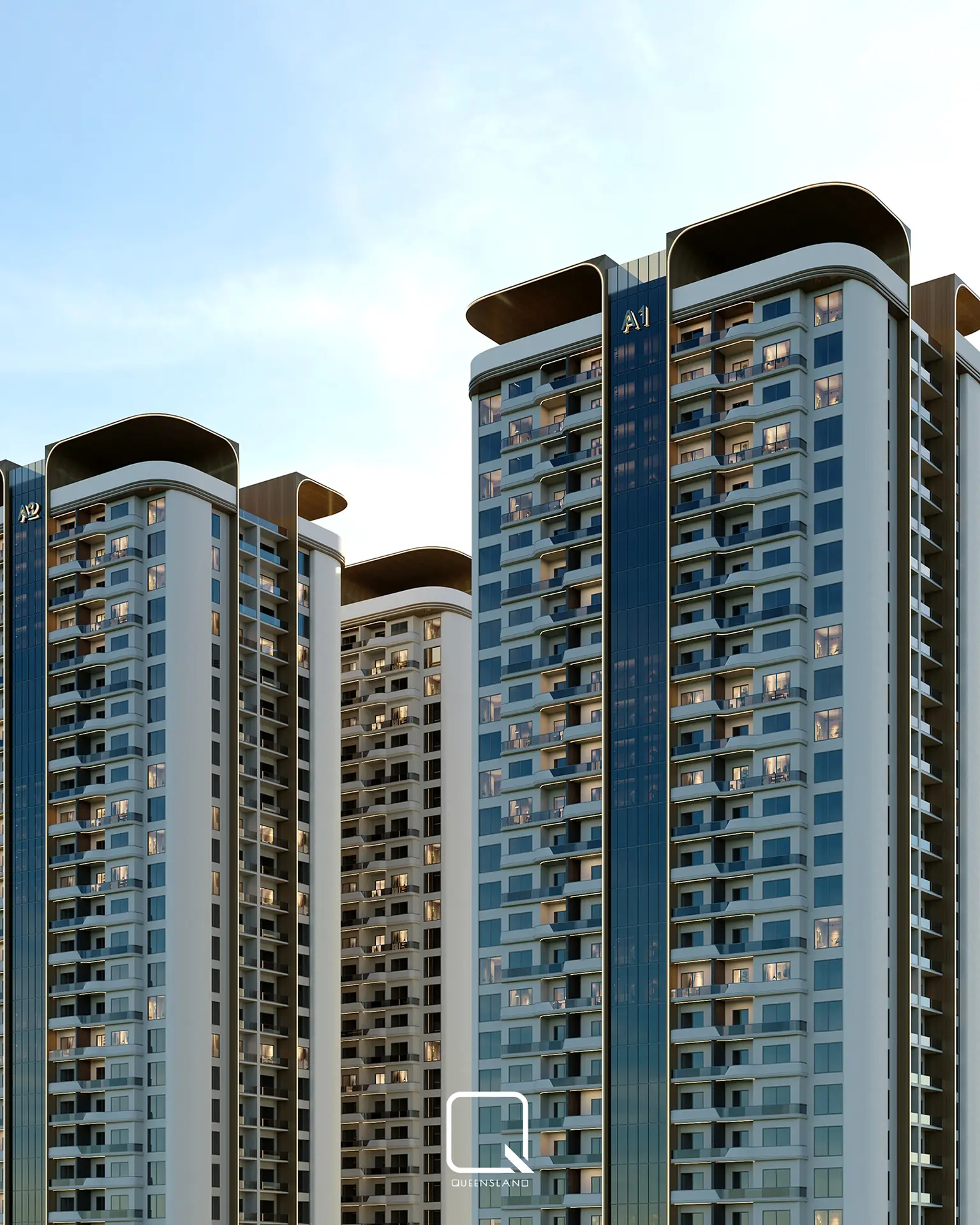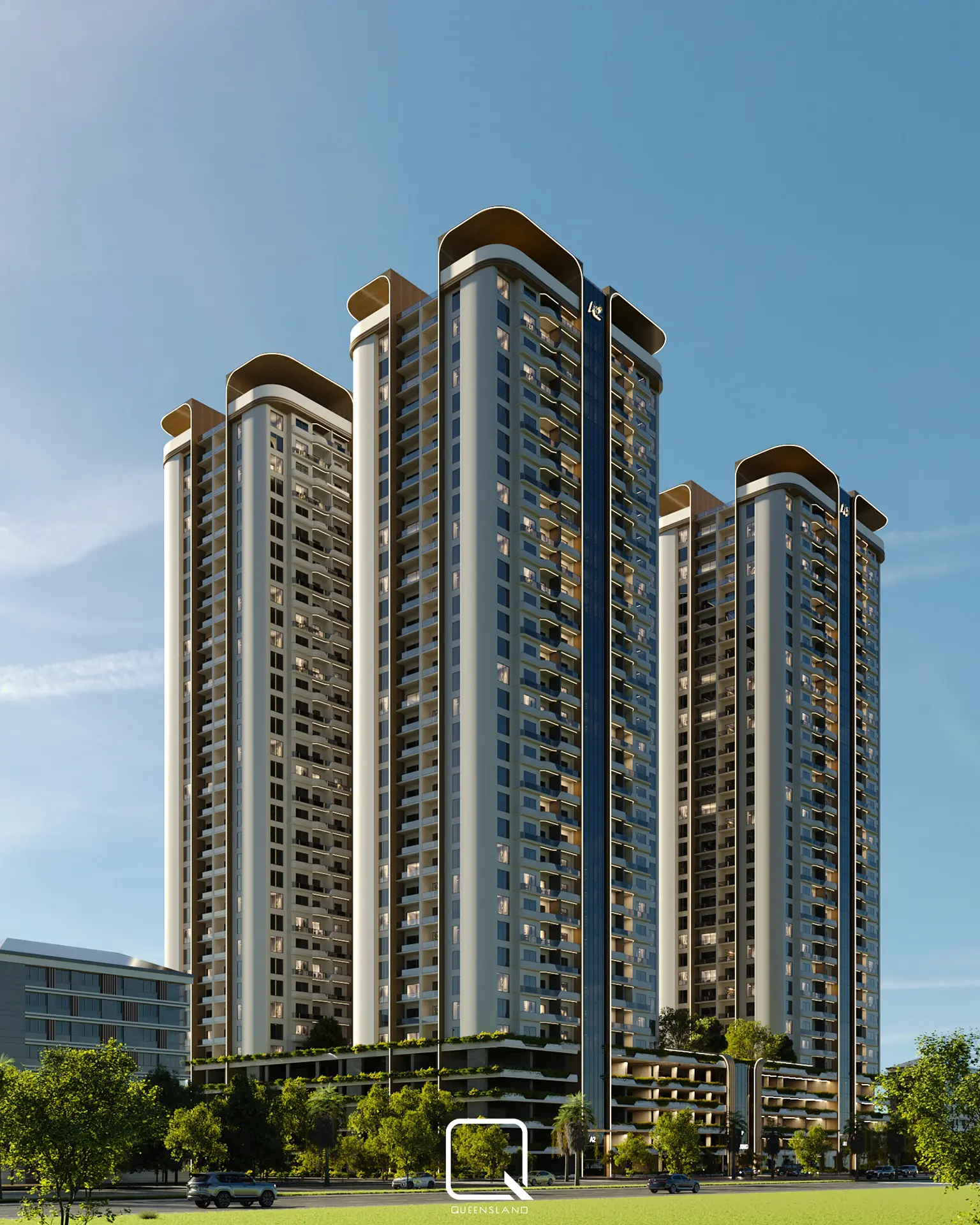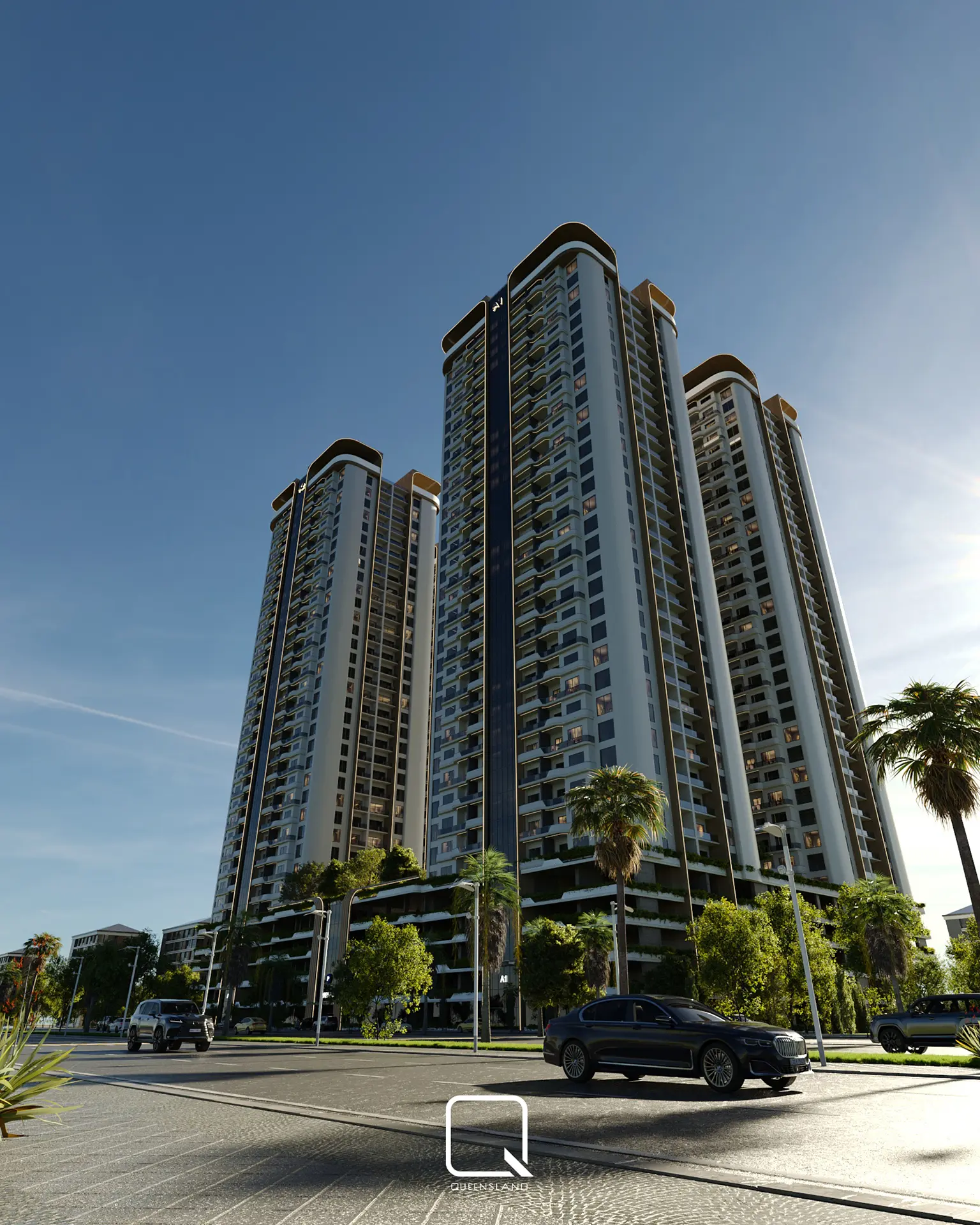 The exterior design of a Towers in Baghdad, showcases a blend of classic architectural style and traditional elements. The design emphasizes elegance and simplicity, with clean lines and thoughtful landscaping that enhance the towers’ overall aesthetic.