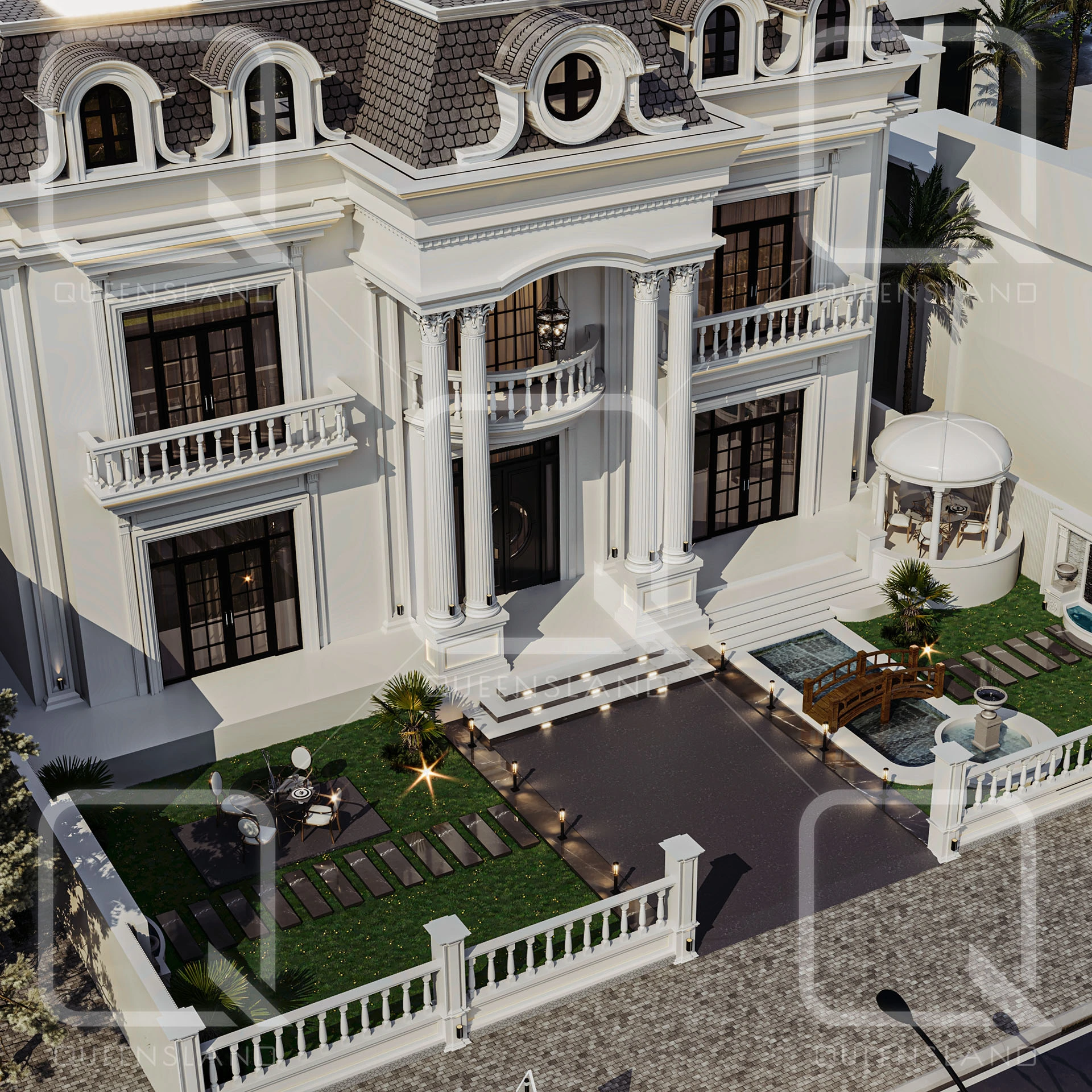 A classic 360 m² villa in Erbil was designed with a focus on timeless exterior aesthetics, blending traditional elements with modern sophistication. The project emphasized elegance and attention to detail, resulting in a striking and enduring architectural presence.